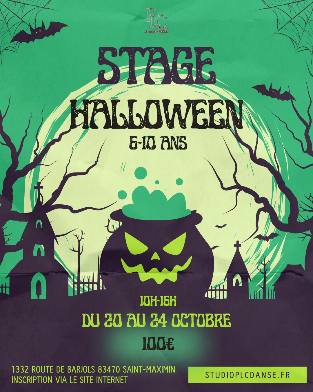 Le stage Halloween pour les 6 - 10 ans aura lieu du 20 au 24 octobre de 10h à 16h au Studio PLC’ Danse, sur réservation obligatoire.